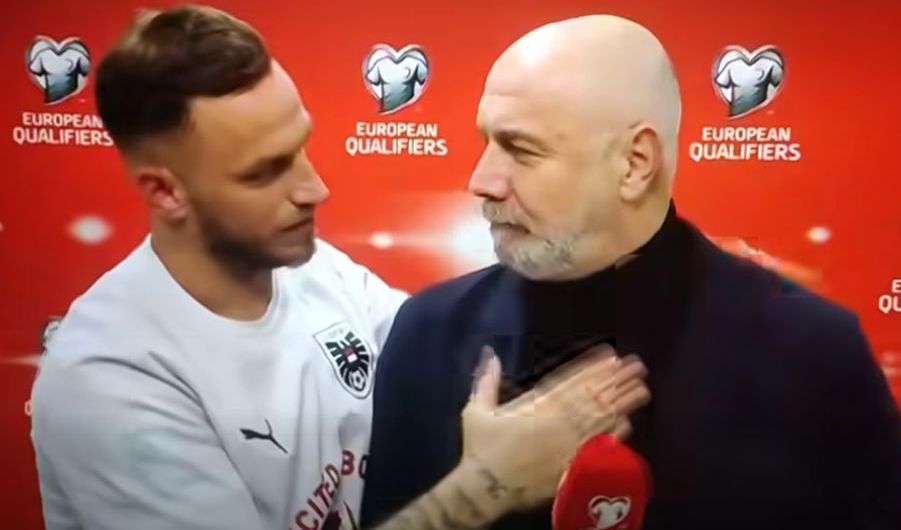 Среде интервју му влезе австрискиот репрезентативец, Марко Арнаутовиќ и му кажа два-три утешни збора покажувајќи класа.