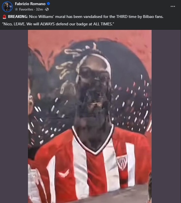 Нико Вилијамс ги налути навивачите на Атлетик Билбао откако јавно изрази желба да го напушти клубот и да се пресели во Барселона, поради тоа неколкупати муралот му е уништуван од страна на незадоволните фанови.