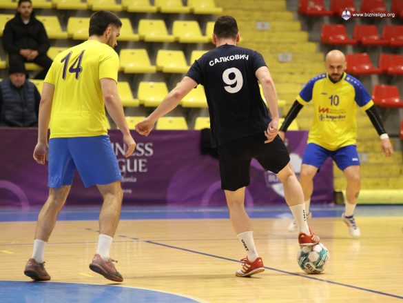 Тринаесетото коло од Бизнис Лигата на Македонија ја отворија екипите на Фабрика Карпош и МРТ. Екипата на Фабрика Карпош ја имаше улогата на фаворит во овој дуел и со офанзивна игра често се закануваше кон голот на противникот. Екипата на МРТ ги затвори пристапите до својот гол и не дозволуваше лесна реализација на противникот. Екипата на Фабрика Карпош во 11та минута успеа да го отвори резултатот со погодокот на Илиевски, но само неколку минути подоцна Фотевски кај МРТ успеа да израмни на 1-1. До крајот на полувремето екипата на Фабрика Карпош преку вториот погодок на Илиевски успеа да дојде до минимална предност од 2-1. Во второто полувреме екипата на Фабрика Карпош продолжи со одлична игра и успеа да зголеми на 3-1 со погодокот на Божиновски во 30та минута. Екипата на МРТ преку Мицевски успеа да намали на 3-2 но немаше сили за пресврт па екипата на Фабрика Карпош славеше со 4-2.