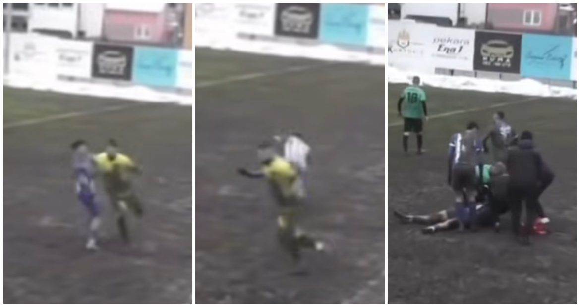 Една неверојатна сцена доаѓа од фудбалските терени во Босна и Херцеговина каде што центар на вниманието стана голманот на Ораховиќ кој брутално нокаутираше фудбалер на Омладинец.