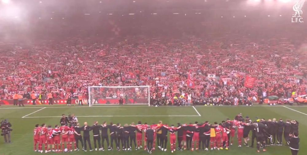 По завршувањето на мечот, фудбалерите на Ливерпул отидоа пред најжешката трибина на Енфилд, се прегрнаа и заедно со навивачите ја пееја клупската химна.