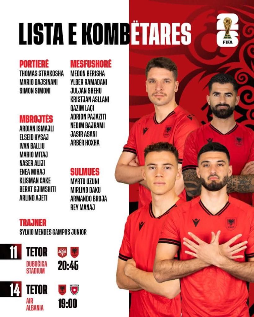 Албанскиот селектор Силвињо го објави списокот на фудбалери за октомврискиот ФИФА прозорец.