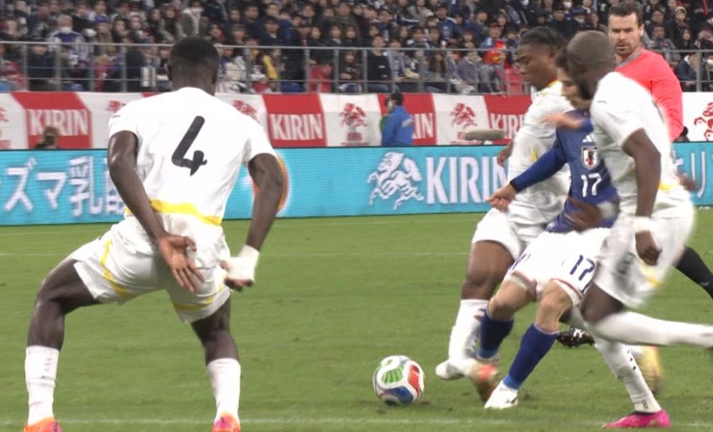 Франсис Абу од Тулуз се обиде да го блокира ударот на Ао Танака од осумнаесет метри, но наместо топката, јапонскиот фудбалер го погоди директно по ногата. Стопалото на Франсис се сврте во неприродна положба и тој заработи сериозна повреда. Танака веднаш се извини и на играчот и на селекторот на Гана Ото Адо.
