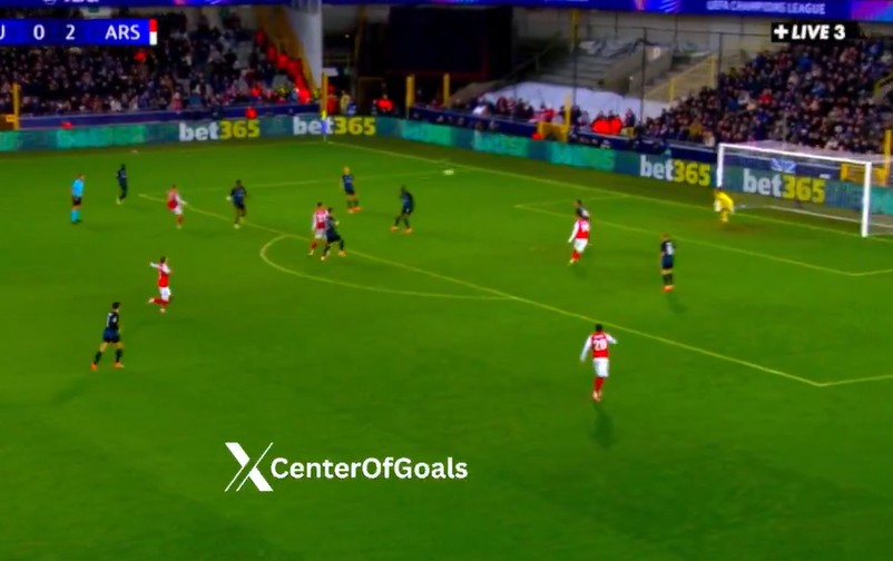 Eкипата на Арсенал е пред победа на гостувањето кај Клуб Бриж каде што има водство од 3-0, а третиот погодок кој беше дело на Габриел Мартинели е вистинско ремек-дело.