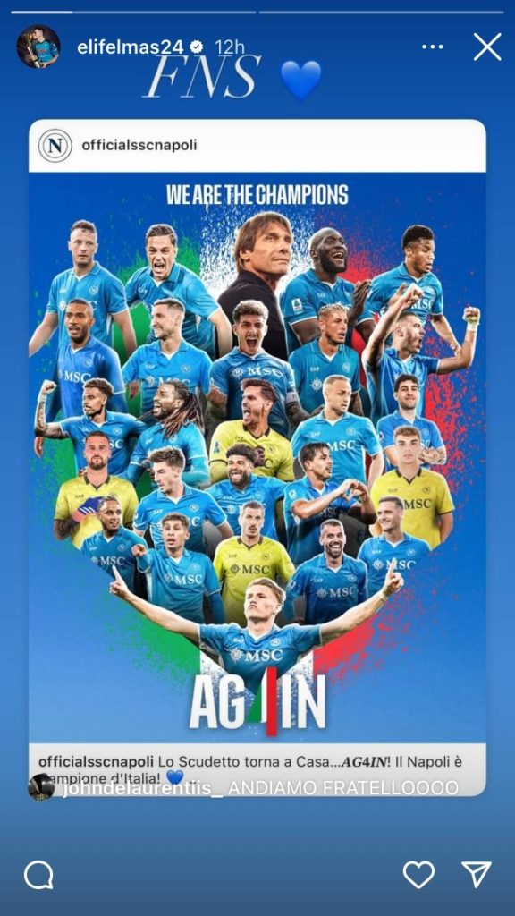 „Напред Наполи, секогаш“, напиша Елмас, покажувајќи дека еднаш Наполи – секогаш Наполи.