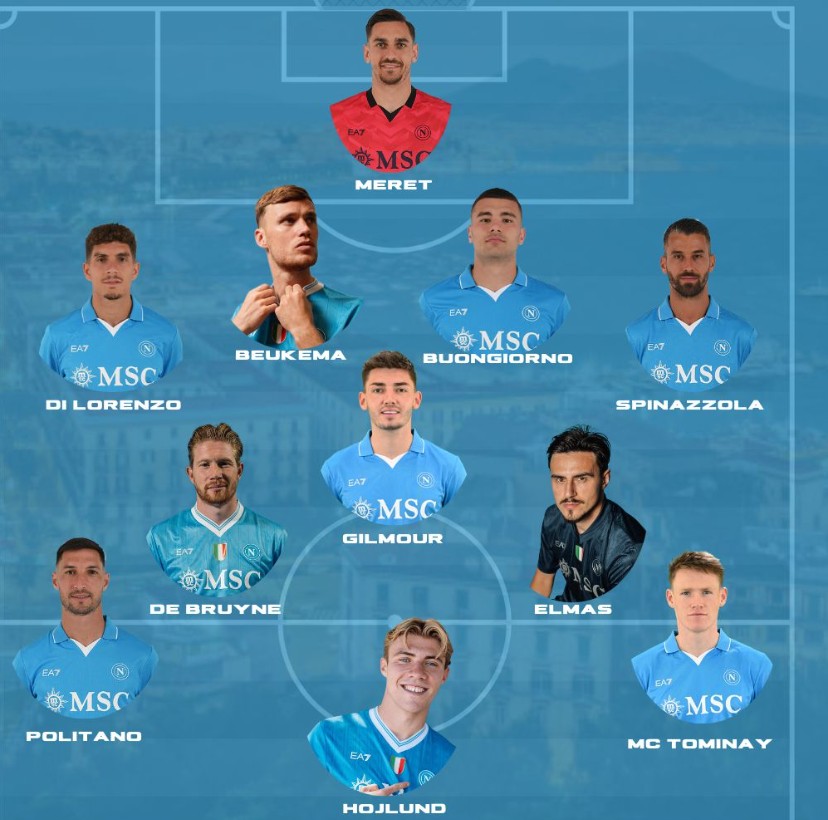 Елмас ќе стартува средниот ред каде што се уште Гилмор и Де Брујне, а во нападот за Наполи од првата минута ќе тргнат Хојлунд, Мектоминеј и Политано.