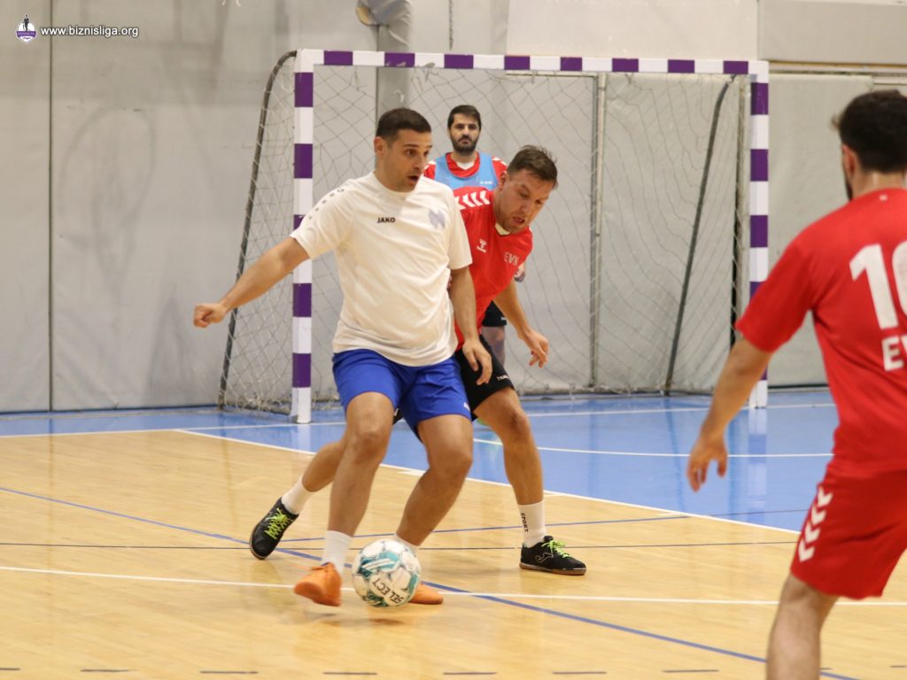 Израмнето прво полувреме одиграа екипите на ЕВН и Халк Банка, двете екипи на овој натпревар настапија со отворена игра. Екипата на Халк Банка прва го отвори резултатот со погодокот на Тахир во 2та минута, следуваше брз одговор од екипата на ЕВН кои преку Тодоровски успеаа да израмнат во 3та минута а кратко потоа и да дојдат до целосен резултатски пресврт. Двете екипи играа отворен фудбал но екипата на ЕВН имаше подобра реализација па успеаа да дојдат до солидна предност од 4-1. До полувремето екипата на Халк Банка успеа да ја намали резултатската негатива која на паузата изнесуваше 4-2. Во второто полувреме екипата на Халк Банка успеа да ги консолидира своите редови во игра внесе голман играч што тотално ја смени играта на терен па успеаа да дојдат до израмнување на резултатот на 6-6 во 37та минута. Сепак екипата на ЕВН во финишот од натпреварот го остави срцето на терен и со два одлични погодоци успеа да слави со 8-6.