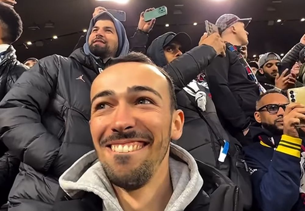 Кога дојде тој момент пред мечот со ПСЖ, фановите на францускиот тим молчеа и со внимание ја следеа атмосферата, еден од нив беше видно возбуден, дури и очите му се насолзија.