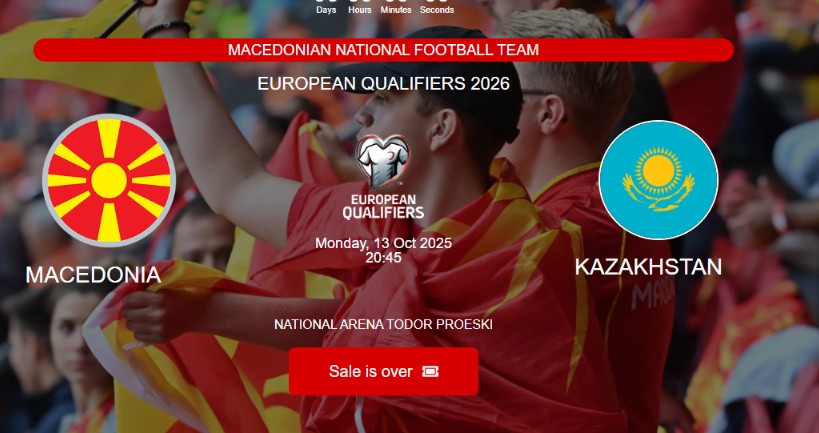 Фудбалската репрезентација на Македонија вечерва го пречекува Казахстан, а на неполн час пред почетокот на овој дуел беше објавено дека билети во продажба веќе нема.