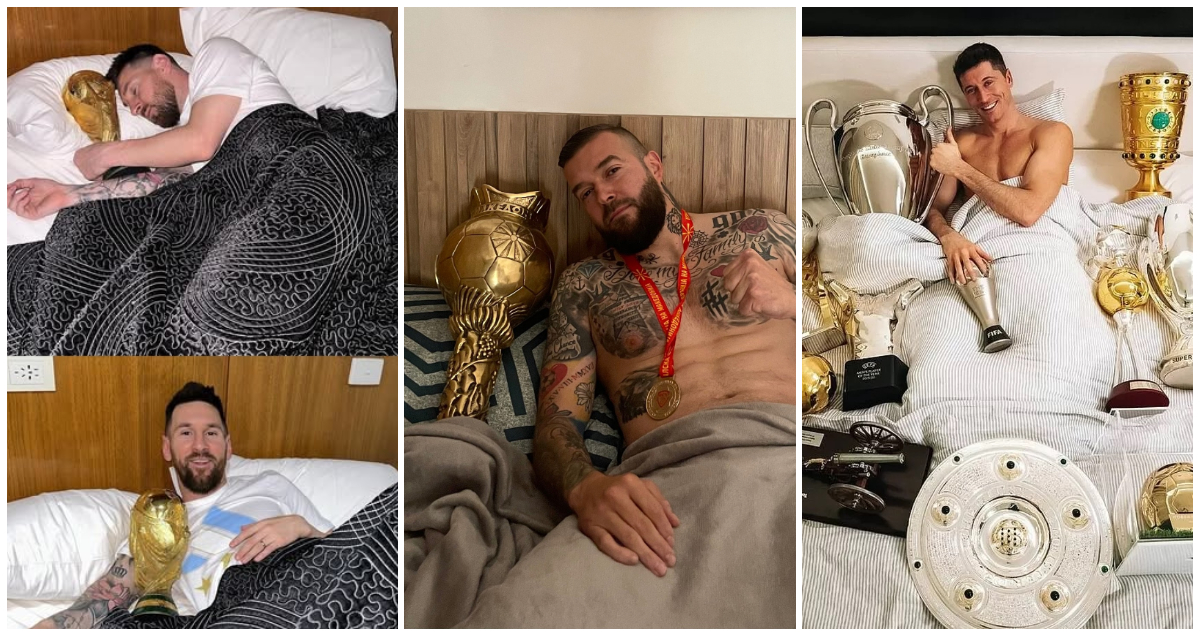 Во минатото вакви потези правеа повеќе фудбалери, а најславни се фотографиите на Лео Меси со трофејот од Светското првенство, како и онаа на Роберт Левандовски кога со Баерн Минхен ги освои сите трофеи.