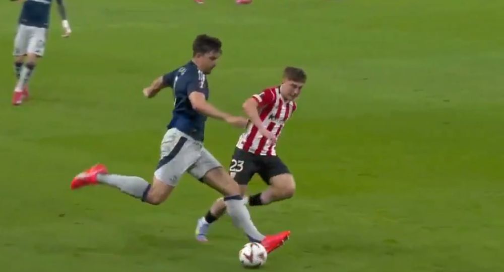 Дефанзивецот за момент отиде на необична позиција за него, се проба како крилен напаѓач, наеднаш почна да дрибла и да го шета фудбалерот на Билбао, па ја центрираше топката до Угарте кој додаде со глава до Касемиро, а тој погоди за водство на Јунајтед од 1-0.