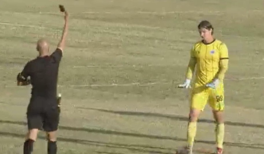 Германскиот голман на голот на Шкупи во денешниот натпревар со Тиквеш направи брутален старт за кој заслужен заработи црвен картон.