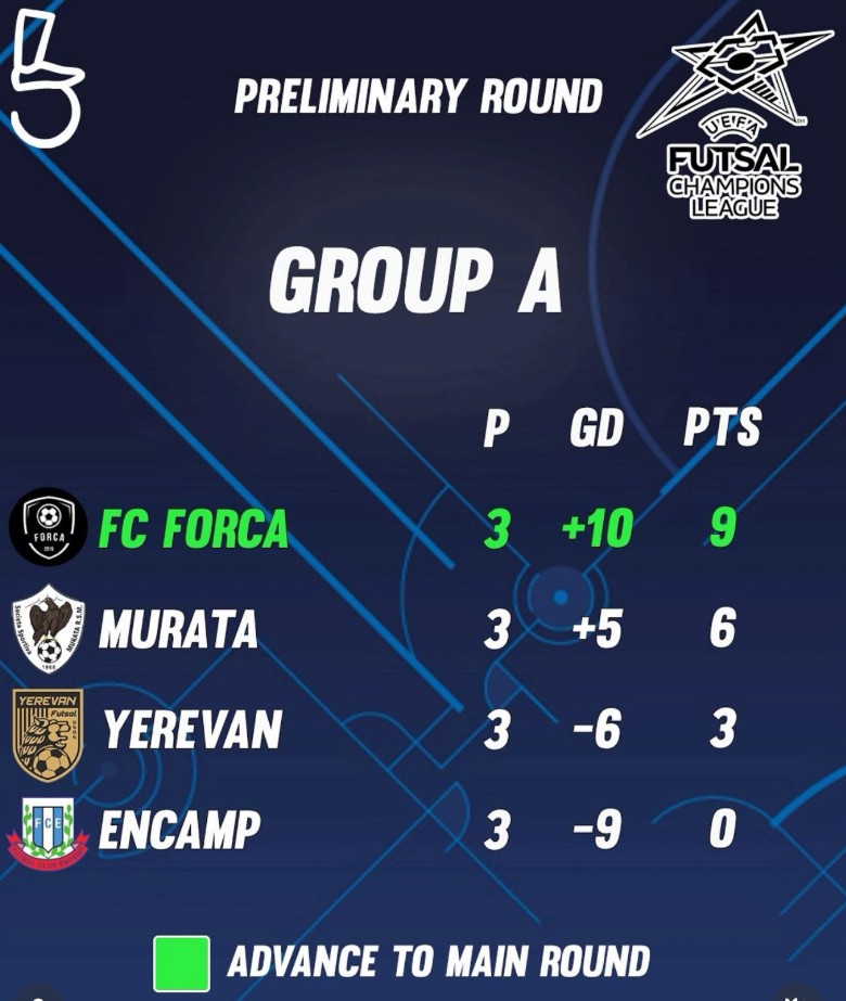Претходно Форца славеше 4-0 над Енкамп од Андора и 1-0 против Мурата од Сан Марино, па групата ја заврши како првопласирана.