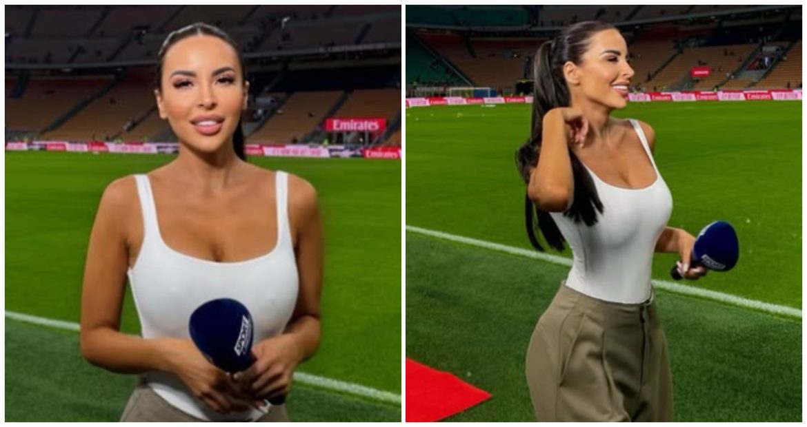 Новинарката на „Спорт Медиасет“, позната по провокативниот стил на облекување, се појави во бело боди без градник, што веднаш предизвика реакции кај навивачите и нејзините 4,4 милиони следбеници на Инстаграм.