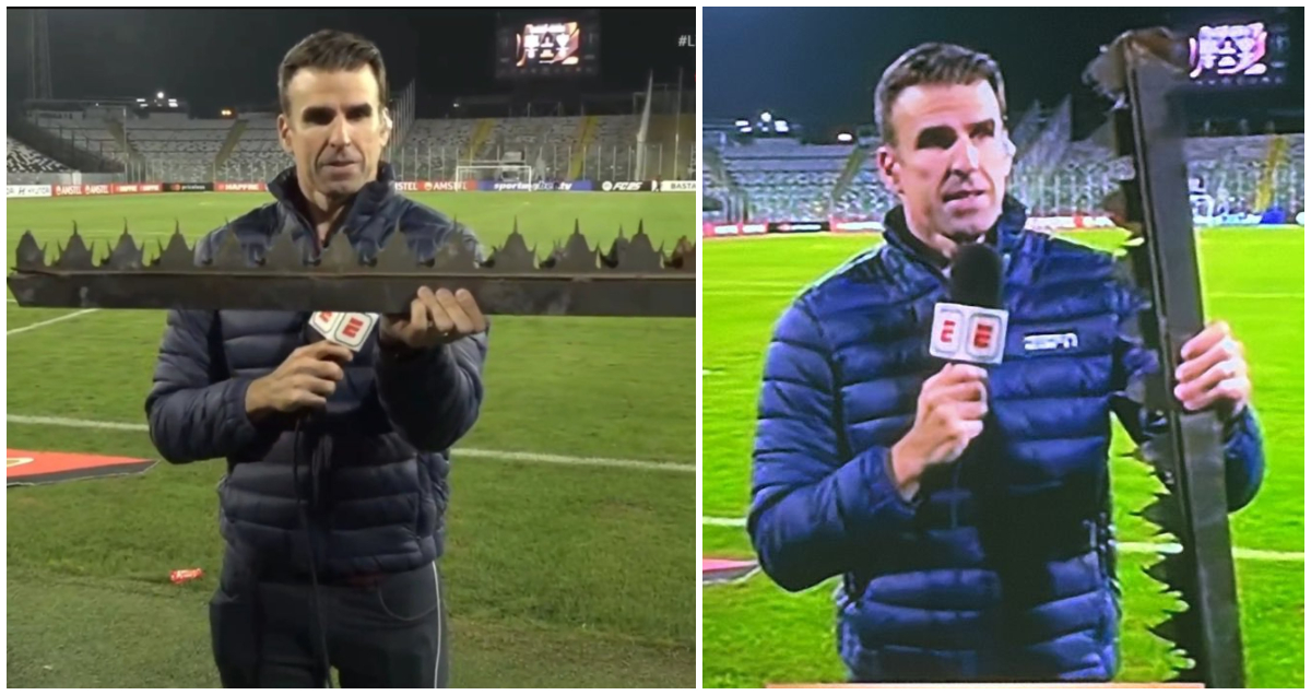 Еден чилеански новинар по натпреварот во живо на телевизија покажа што навивачите на Коло Коло фрлија на теренот и тоа е неверојатно. На тревникот во еден момент долетало некое железо со остри краеви кое веројатно било дел од конструкцијата на стадионот.