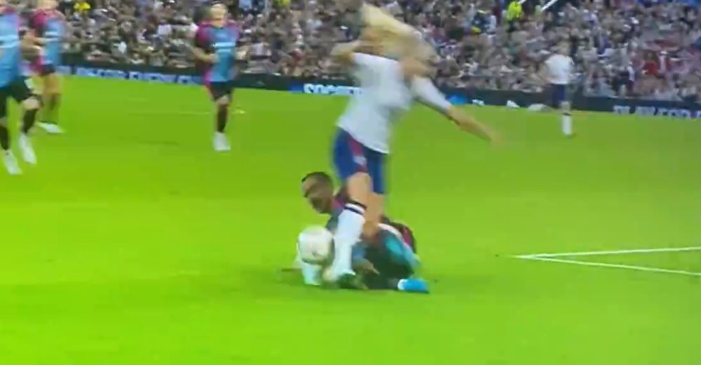 Стартот беше исклучително остар, ја покоси фудбалерката, но беше на топка, па не беше досуден фаул. Бонучи за овој непромислен потег доби свирежи од публиката.