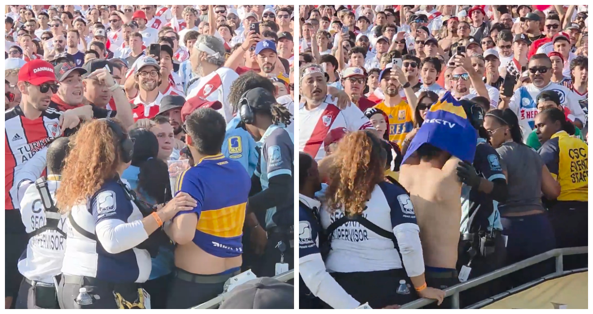 Ситуацијата веднаш ескалираше кога навивачите на „милионерите“ го забележаа дресот на најомразениот ривал, атмосферата за неколку секунди стана напната. Група од десетина гневни навивачи започнаа да му приоѓаат, па младиот фан беше принуден да го соблече дресот на Бока за да избегне посериозен конфликт.