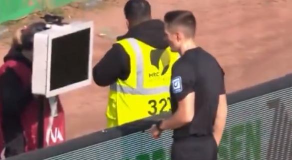 Во еден момент судијата доби повик од ВАР собата да ја провери спорната ситуација за можен пенал за Херта. Додека се подготвуваше да ја погледне снимката на екранот покрај теренот, се случи хаос на трибините.