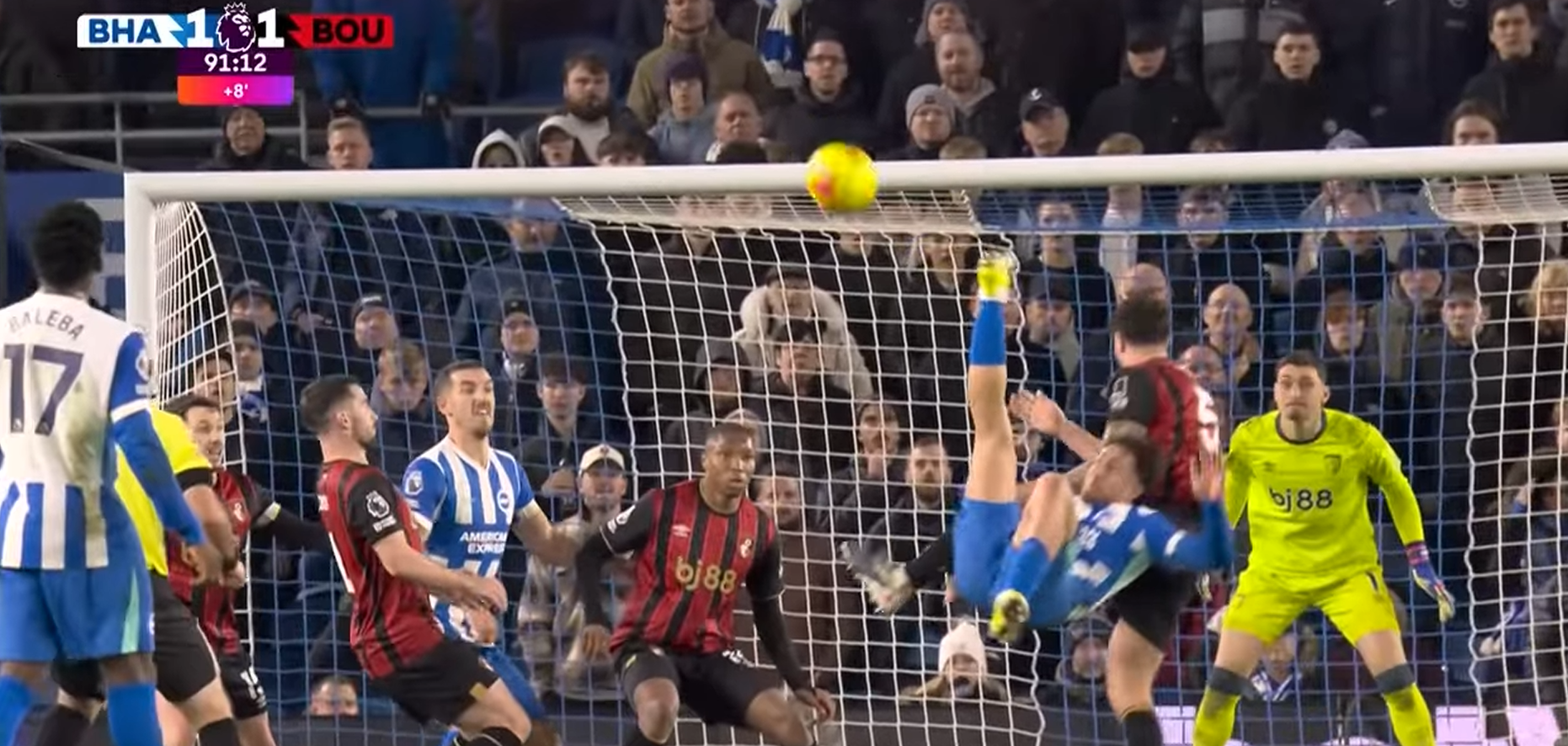 Фудбалерите на Брајтон избегнаа пораз против Борнмут и одиграа нерешени 1-1 во последниот натпревар од 22. коло на Премиер лигата.