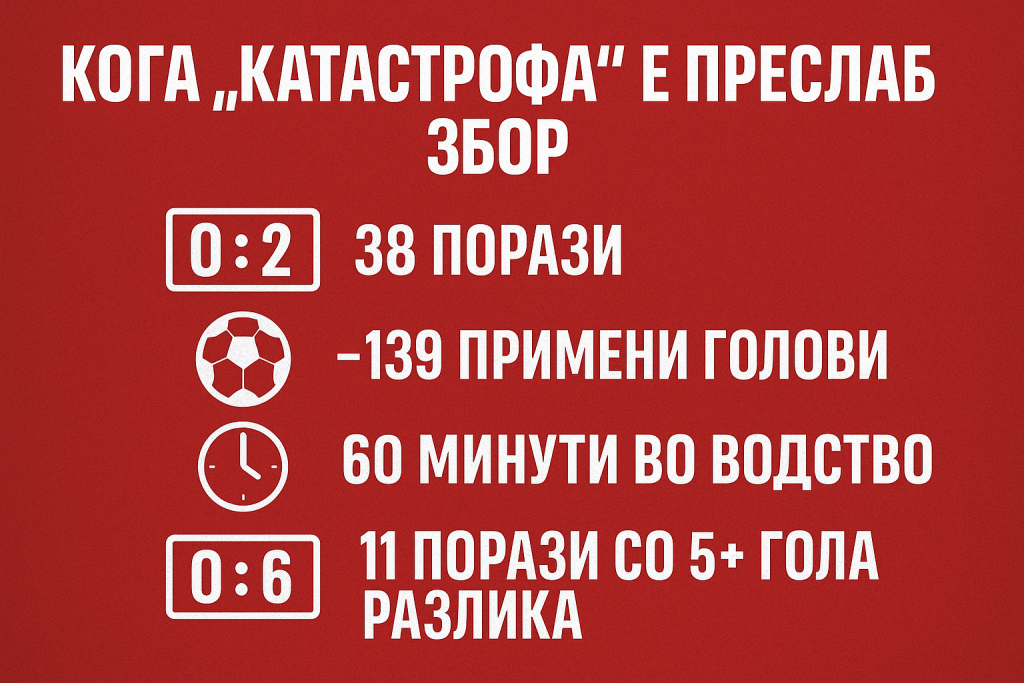 Од тие 38 натпревари, 11 завршија со 5+ гола во нивна мрежа. Во водство биле вкупно 60 минути цела сезона. Тоа е 1,75% играчко време – односно нешто повеќе од две посети во продавница. Успеаја да загубат и во Купот – и тоа од четвртолигаш, со класични 0:2.