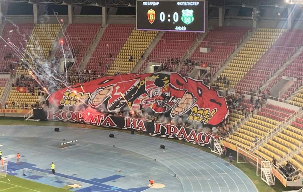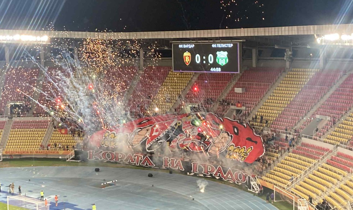 Навиваачите на Вардар приредија вистински спектакл во чест на подгрупата „Лојал Фанс“ во дербито со Пелистер во кое по првите 45 минути „црвено-црните“ имаат водство од 1-0.