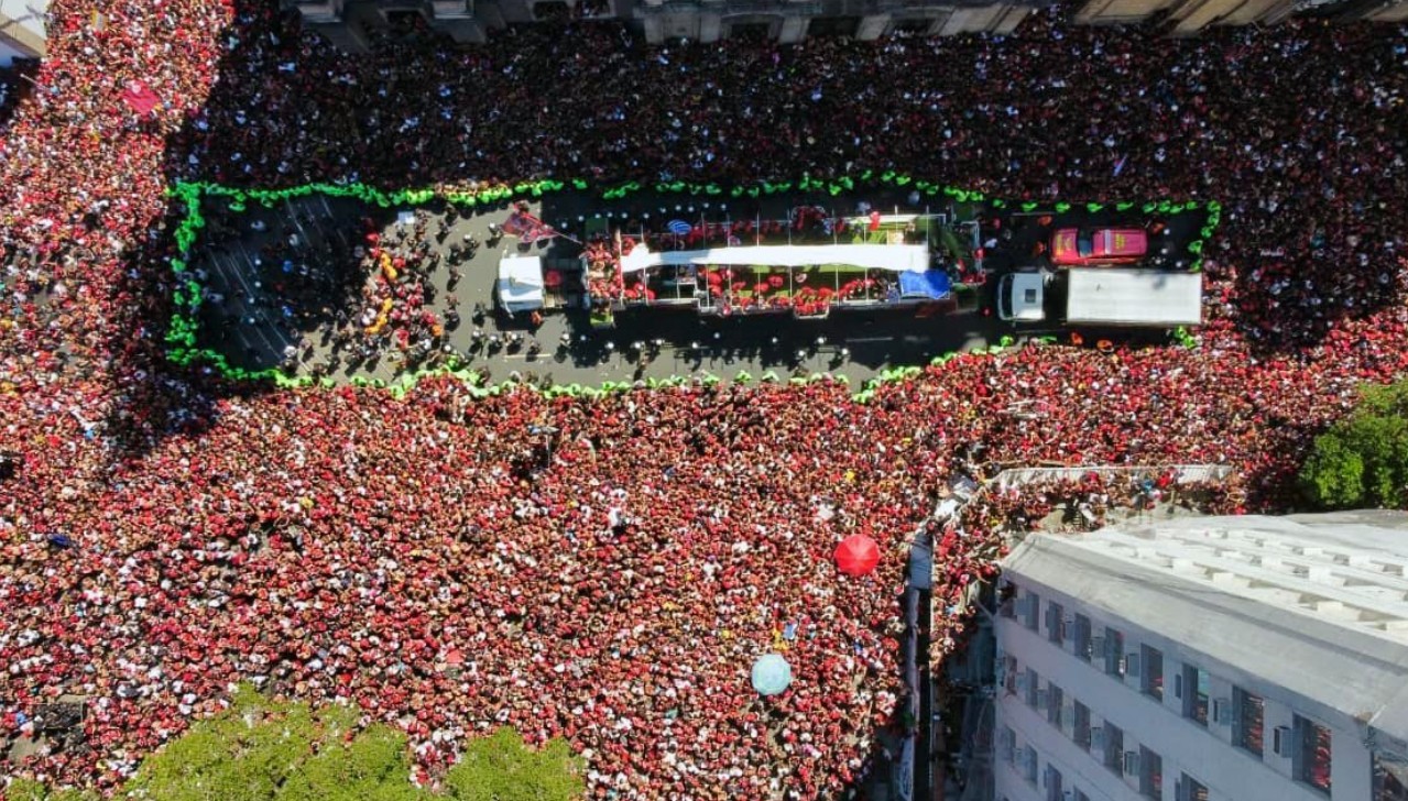 A Rua Primeiro de Março já está lotada de torcedores esperando o time campeão da Taça Libertadores 2025!
