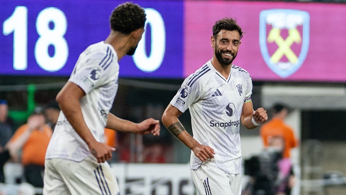 Манчестер јунајтед со 2-1 го совлада Вест Хем на пријателскиот натпревар во Њу Џерси, Бруно Фернандеш со два гола ги предводеше „ѓаволите“ до славје.