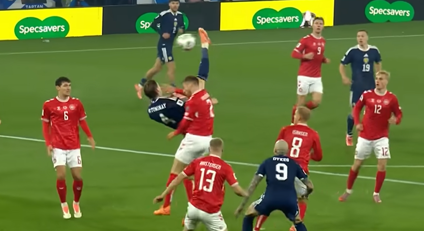 Шкотска обезбеди пласман на Светското првенство 2026 со победата над Данска од 4-2, но вистинската атракција на мечот беше голот на Скот МекТоминеј. Погодокот веднаш стана глобална тема и за кратко време го преплави фудбалскиот свет.