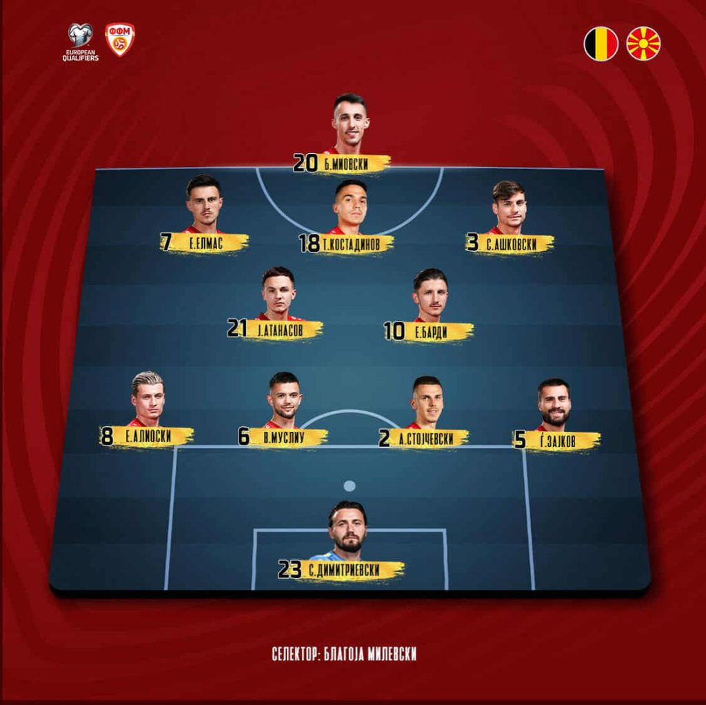 Селекторот на македонската фудбалска репрезентација, Благоја Милевски ги одреди стартерите за вечерашниот важен меч против Белгија од квалификациите за Светското првенство.