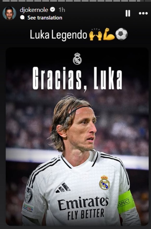 Лука Модриќ вчера го одигра последниот натпревар во дресот на Реал Мадрид, а честитка за постигнатото во изминатиот период доби и од српскиот тенисер, Новак Ѓоковиќ.