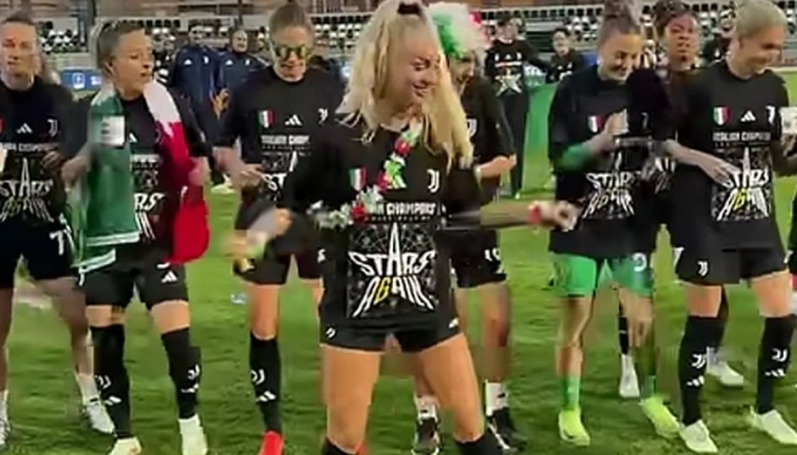 Фудбалерките на Јувентус го освоија шампионскиот трофеј во женската Серија А, а една од највпечатливите сцени од прославата ја приреди швајцарската ѕвезда Алиша Леман.