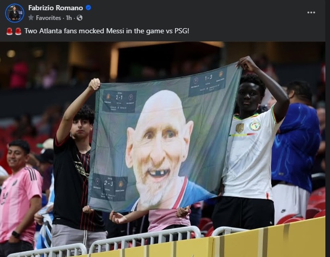 Тие извадија платно со слика од Меси претставен како старец без заби, на платното имаше и неколку резултати со порази на Интер Мајами.