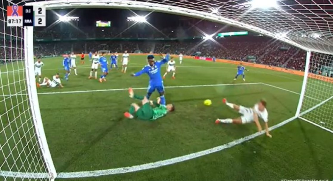 Голoт беше признат и покрај тоа што јасно се гледаше дека непосредно пред погодокот, Винисиус со ногата го удри голманот на Елче, Ињаки Пења, директно во главата, сцена која можеше да се забележи и на снимката. Домаќините бурно реагираа, но судијата Франциско Хосе Ернандез покажа кон центарот, иако Пења крвареше од носот по ударот.