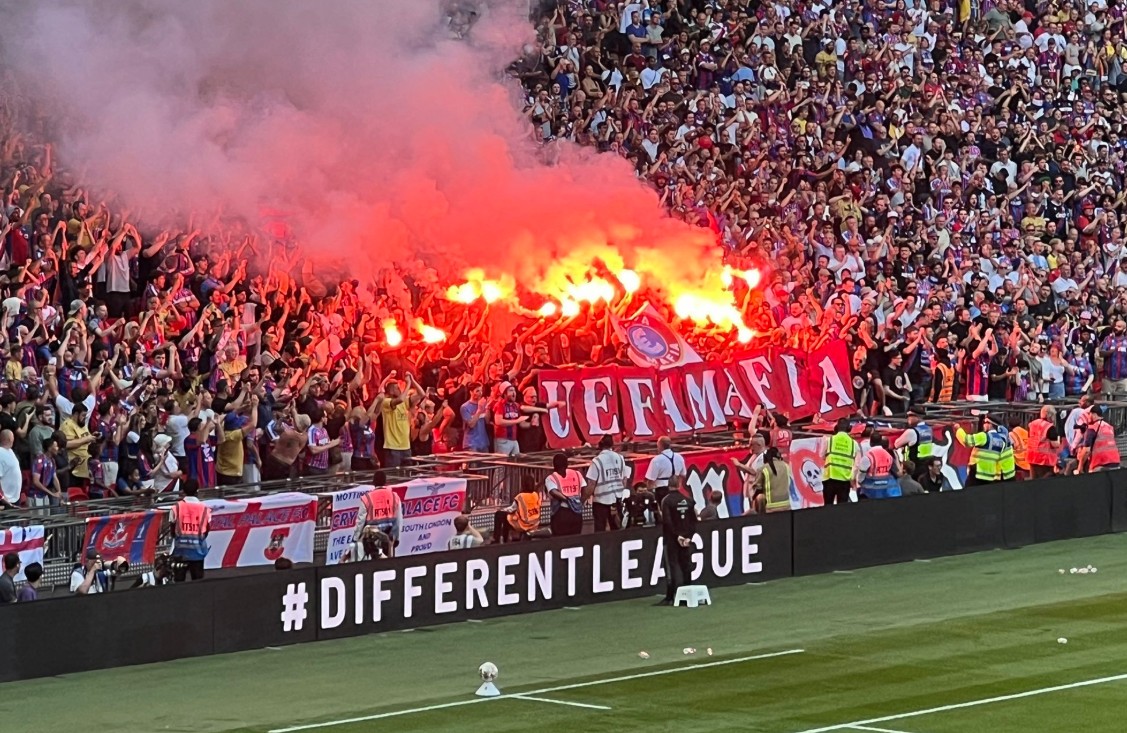 На трибината со навивачи на Кристал палас беше направено пиротехничко шоу при кое се истакна и парола „УЕФА мафија“.