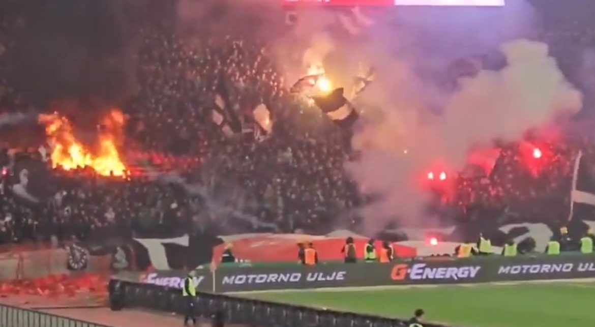 Los ultras del Partizan ⚫️⚪️ quemando las gradas del estadio Rajko Mitic.