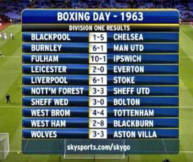 Инаку, највозбудливиот „Боксинг деј“ беше во 1963 година, кога на десет натпревари паднаа дури 66 гола. Најубедлив беше Фулам во мечот со Лестер (10-1), а Манчестер Јунајтед загуби од Барнли (6-1).