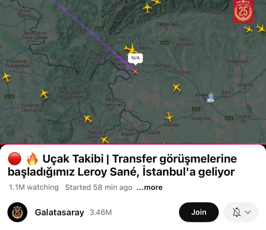 Меѓу навивачите на Галатасарај има невидена еуфорија поради трансферот на Сане. Доказ за тоа е дека повеќе од 1.100.000 фанови на турскиот клуб го следеле летот на фудбалерот преку јутјуб.