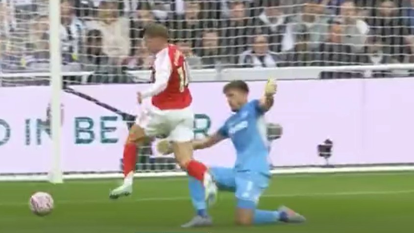 На натпреварот помеѓу Њукасл и Арсенал, Виктор Ѓокереш беше во идеална позиција, но при обидот да го издрибла голманот Поуп беше срушен на земја.
