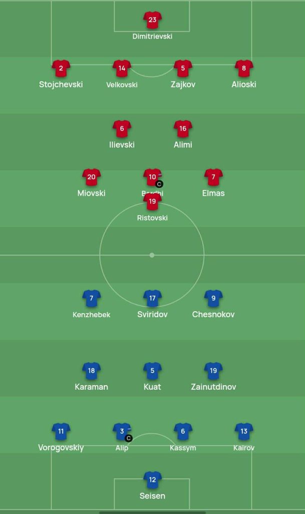 Во средниот ред Алими, Барди и Елмас, а најистурени во нападот ќе бидат Миовски и Милан Ристовски. Стандардно на голот е Димитриевски.