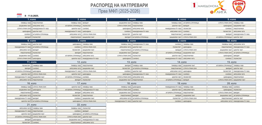Фудбалската федерација на Македонија ги одреди паровите за првите два круга од шампионатот во ПМФЛ.
