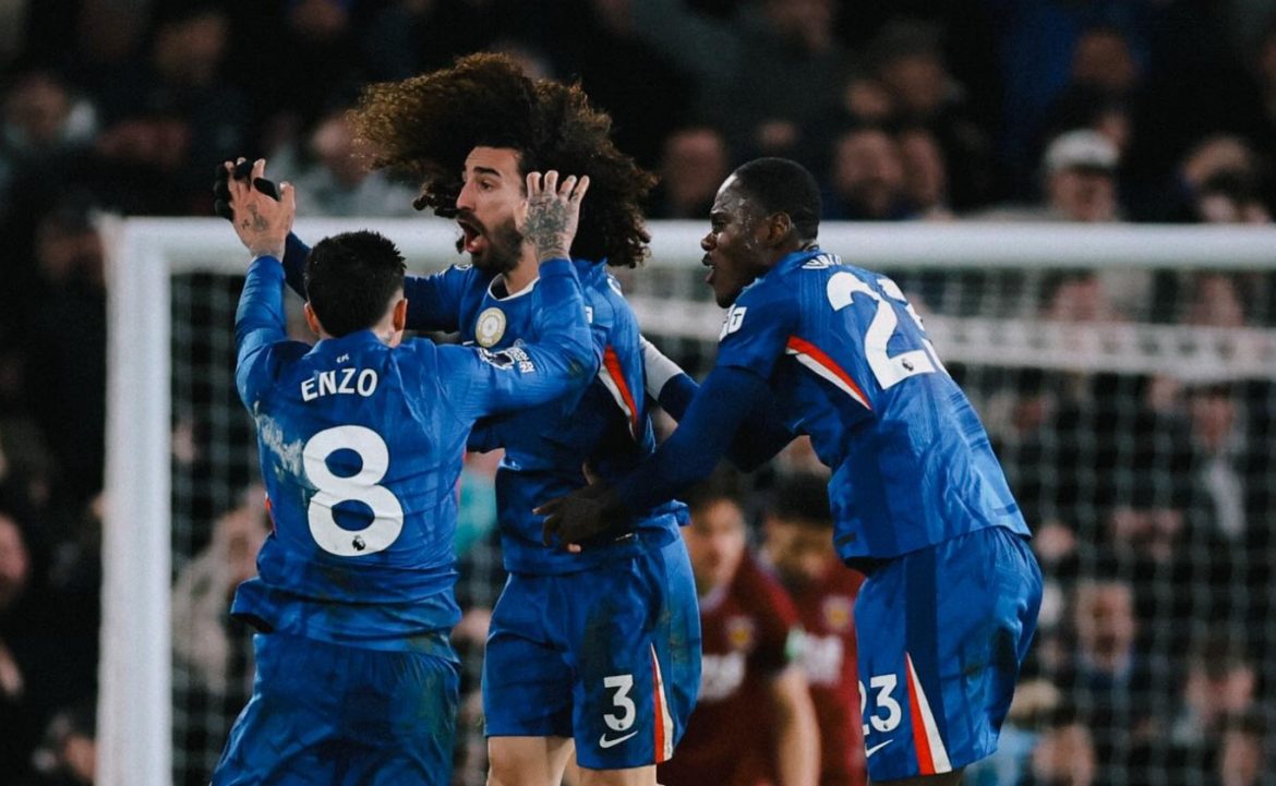 Челси ја забележа третата победа по ред под водство на новиот тренер Лиам Розениор, триумфирајќи со 3-2 над градскиот ривал Вест Хем во возбудливото лондонско дерби.