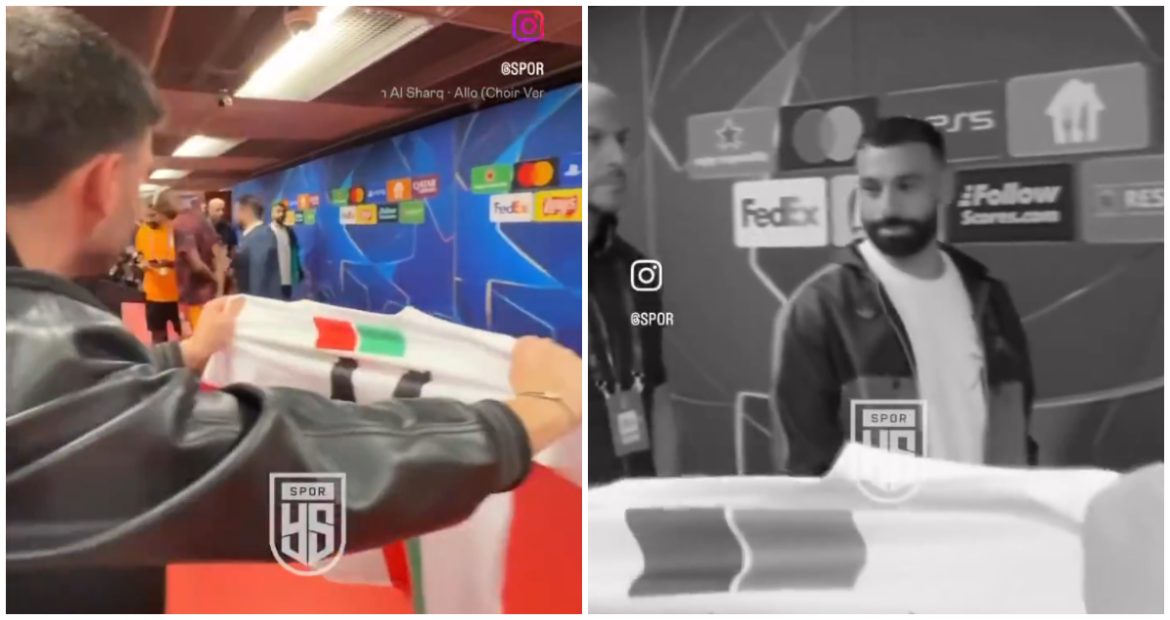 Mohammed Salah avoids signing a Palestine t-shirt following Galatasaray UCL game yesterday.