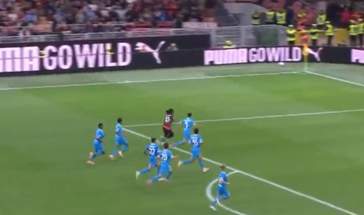 Имено, во обид за контра по еден прекин во 84. минута со топка напред тргна Рафаел Леао. Поругалецот освен што немаше вистинска поддршка од уморните соиграчи, кога стигна во противничкото поле околу него имаше седум фудбалери на Наполи, плус голманот Мерет меѓу стативите.