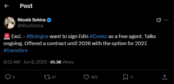 Сепак, според информации на добро упатениот новинар Николо Шира, во трката за потписот на популарниот „дијамант“ влегува и Болоња. Италијанскиот прволигаш му понудил едногодишен договор со можност за продолжување до 2027 година, а преговорите веќе започнале.