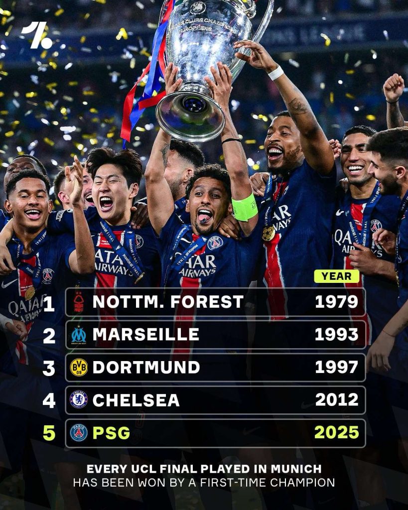 ПСЖ синоќа испиша клупска историја откако го освои трофејот од Лигата на шампионите, а кога финалињата се играат во Минхен има една интересна коинциденција.