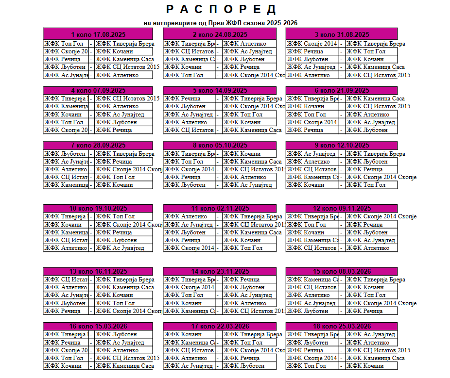 Фудбалската федерација на Македонија попладнево од објави распоредот за Првата женска фудбалска лига.