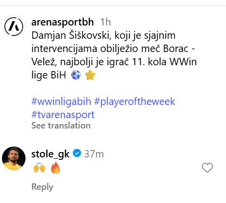 МакедонијаТоп Вести Шишковски е играч на колото во БиХ, доби честитки и од Димитриевски (ФОТО) by riste октомври 20, 2025 октомври 20, 2025 0 минути читање Сподели 0FacebookTwitterPinterestRedditWhatsappEmail 108 Македонскиот голман Дамјан Шишковски е избран за играч на колото поради фантастичните интервенции на мечот меѓу Борац Бања Лука и Вележ. Борац со 1-0 го доби дербито против Вележ, а големи заслуги за победата има нашиот голман Дамјан Шишковски. View this post on Instagram A post shared by Arena Sport BH (@arenasportbh) На објавата на „Арена“ дека Шишковски е играч на колото во БиХ, коментар пристигна и од првиот чувар на мрежата на нашата репрезентација, Столе Димитриевски. Можеби ќе ве интересира Kaква вечер за Димитриевски: Одбрани пенал во 119. минута, па Валенсија постигна гол за победа! (ВИДЕО) Крај за Милан: Лацио закажа четвртфинале во Копа Италија со бранителот на трофејот! (ВИДЕО) Нема две победи во низа за Јунајтед, Французинот Магаса го „смрзна“ „Олд Трафорд“! (ВИДЕО) Репрезентацијата ја напушти и Гроздановски: Милевски е најдобриот тренер во Македонија! Серафимов немаше среќа, си постигна автогол на дербито во Бугарија (ВИДЕО) Њукасл има план – да стане еден од најдобрите во светот до 2030 година! ДимитриевскиШишковски Сподели 0 FacebookTwitterPinterestRedditWhatsappEmail Можно е и ова да ти се допаѓа Kaква вечер за Димитриевски: Одбрани пенал во 119.... Крај за Милан: Лацио закажа четвртфинале во Копа... Нема две победи во низа за Јунајтед, Французинот...