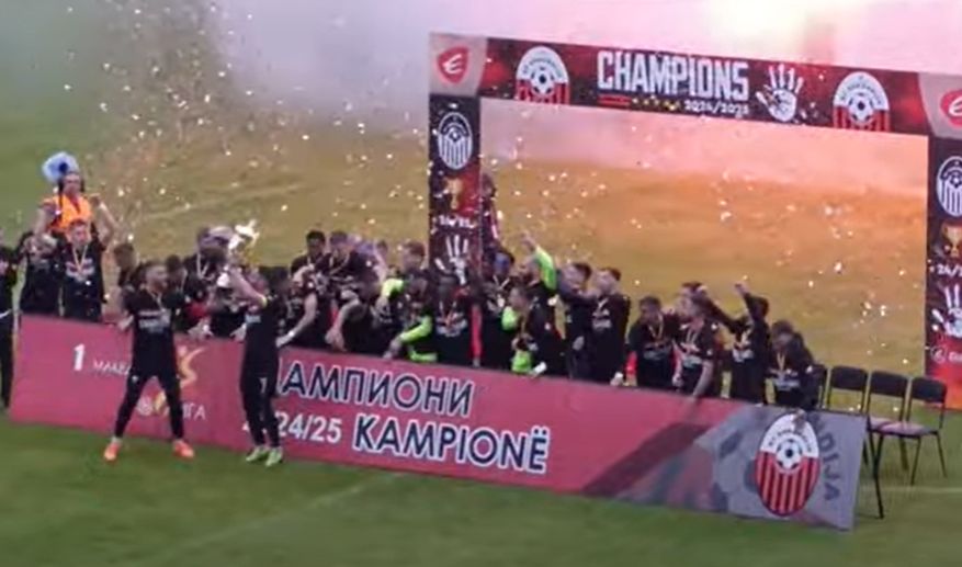 Претседателот на ФФМ, Масар Омерагиќ му го предаде шампионскиот пехар на капитенот, Бесар Ибраими по што славјето можеше да започне.