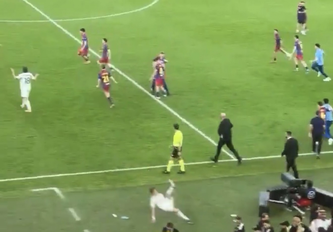 Arda Güler tried kicking a bottle in rage at full time and ended up slipping instead 😭😂