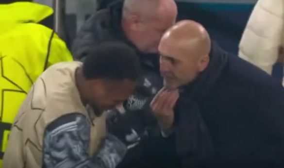 Luciano Spalletti slaps Loïs Openda before coming on during Juventus vs Benfica